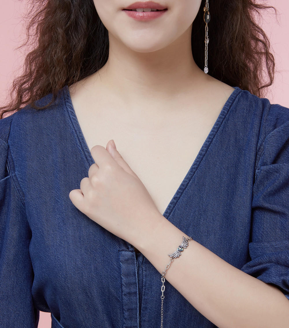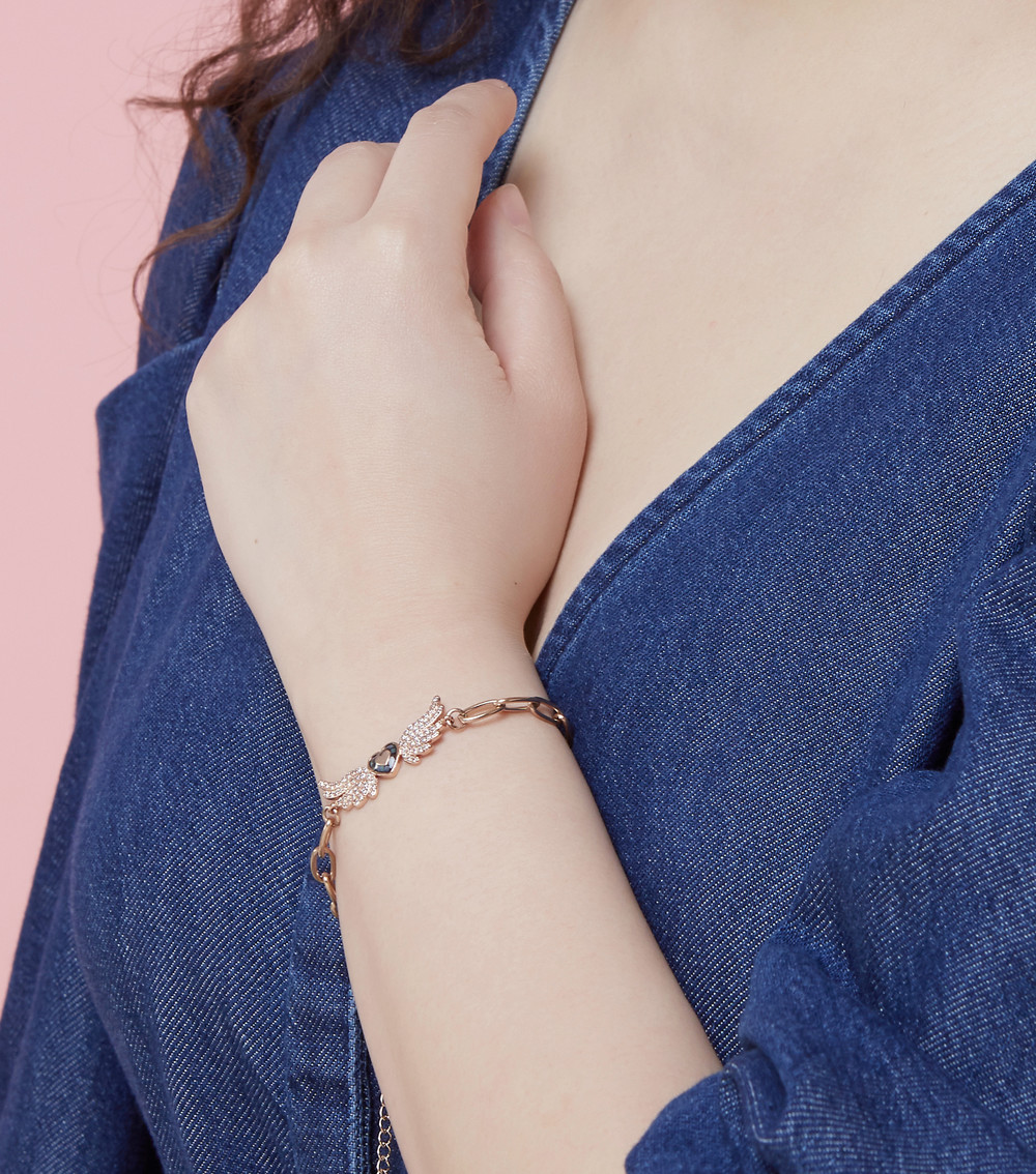 큐빅 날개 볼드체인 팔찌 (3칼라)