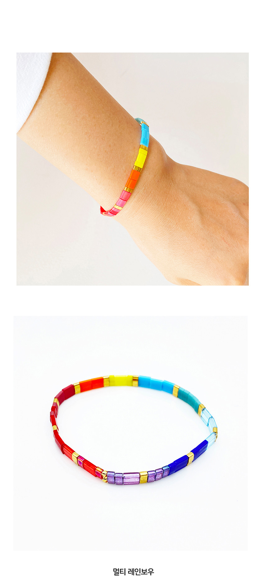 글라스비즈 팔찌 (멀티 레인보우)