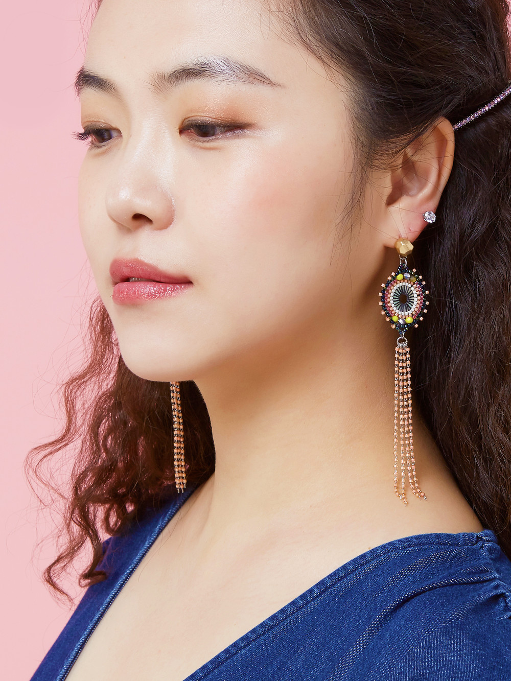 오리엔탈 무드의 보헤미안 스타일의 귀걸이 입니다.