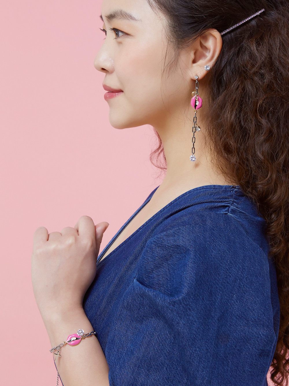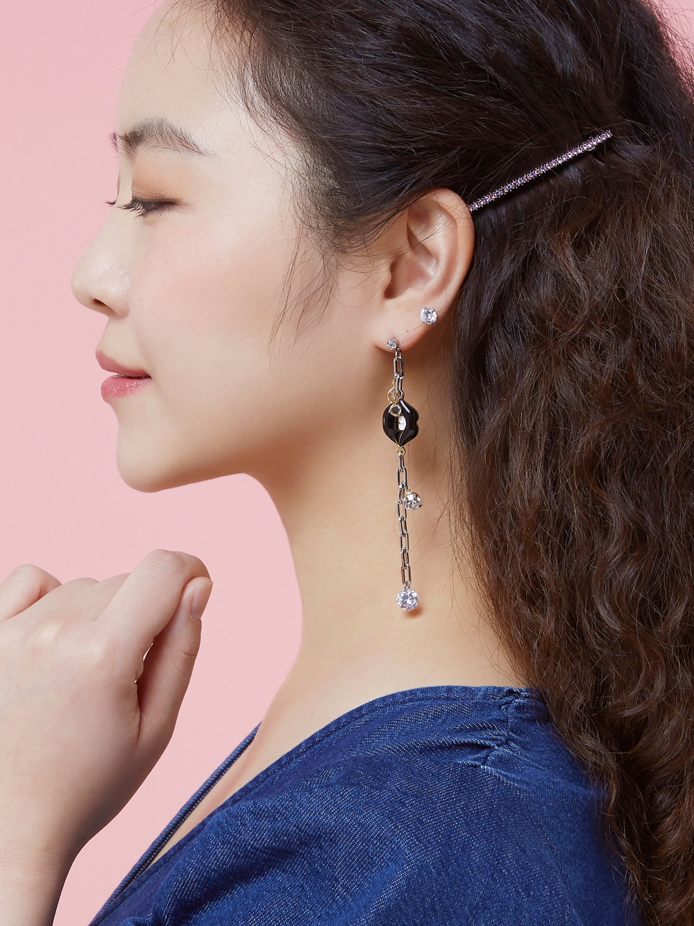 한쪽엔 긴 길이감의 드롭 귀걸이로