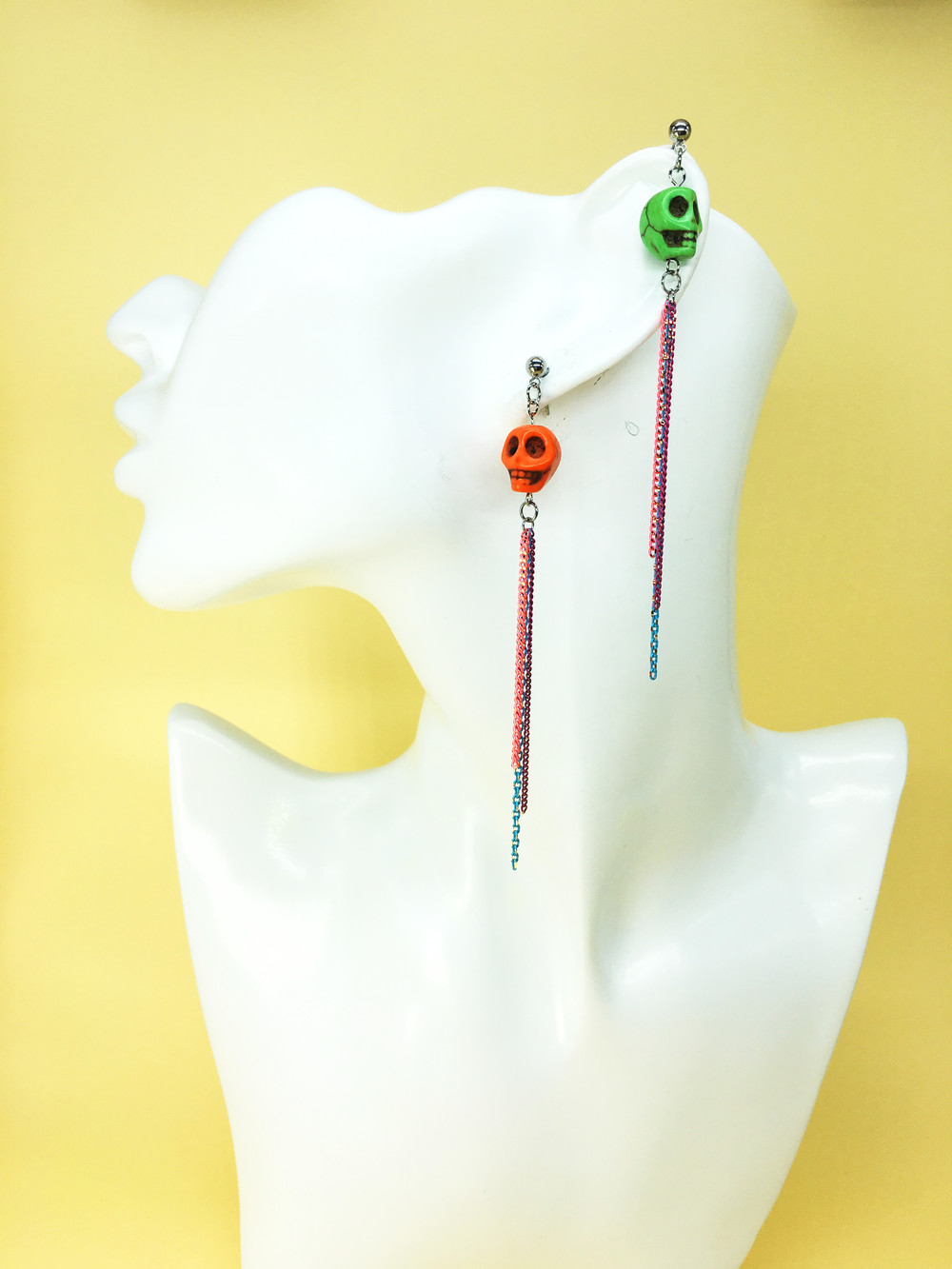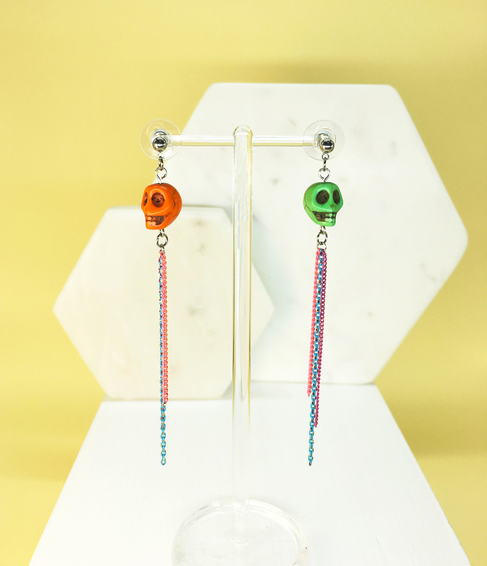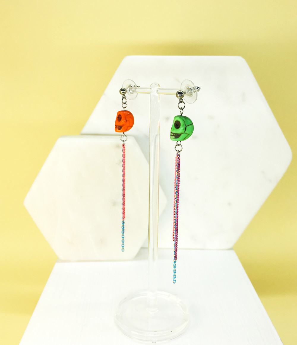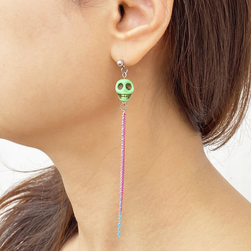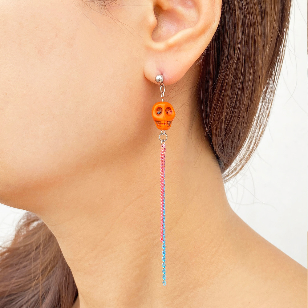 스컬 드롭 귀걸이 (오렌지 그린)