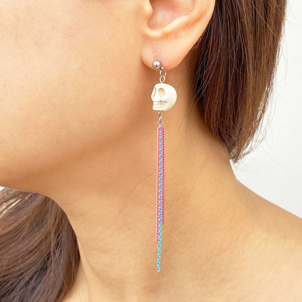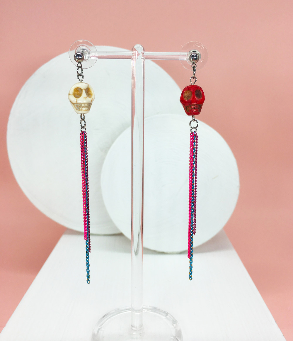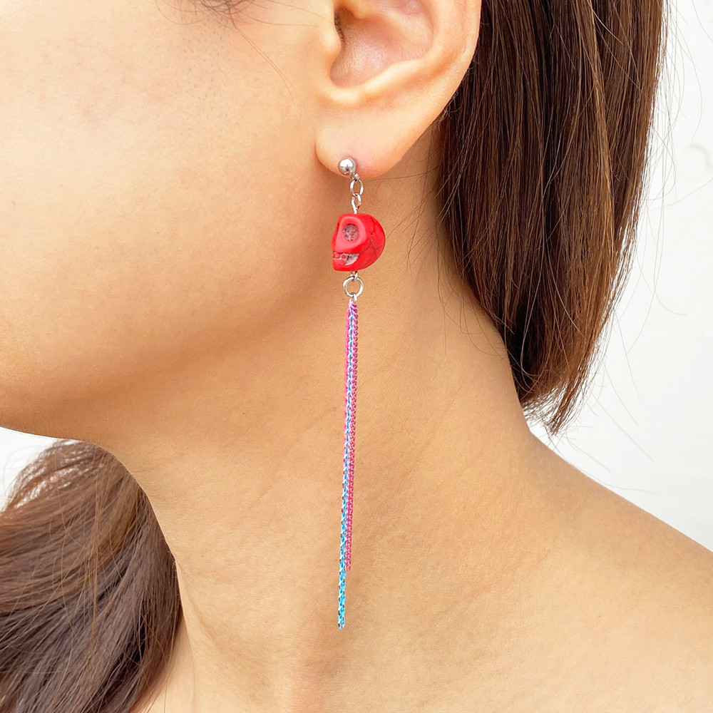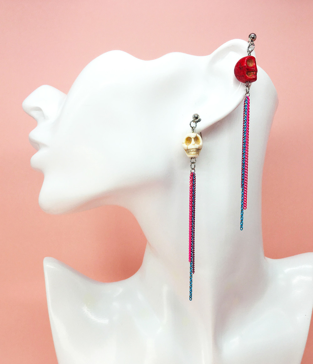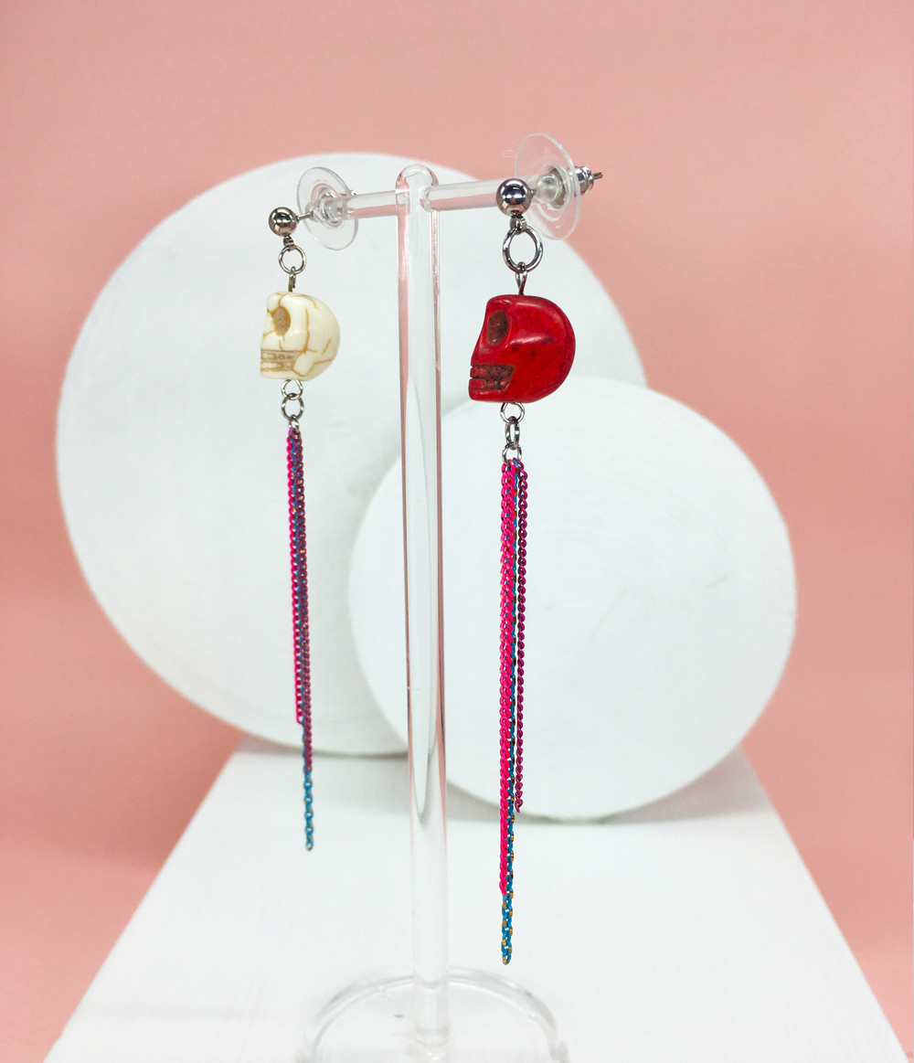 원석에 염색해서 만든 해골의 포인트 귀걸이 입니다.