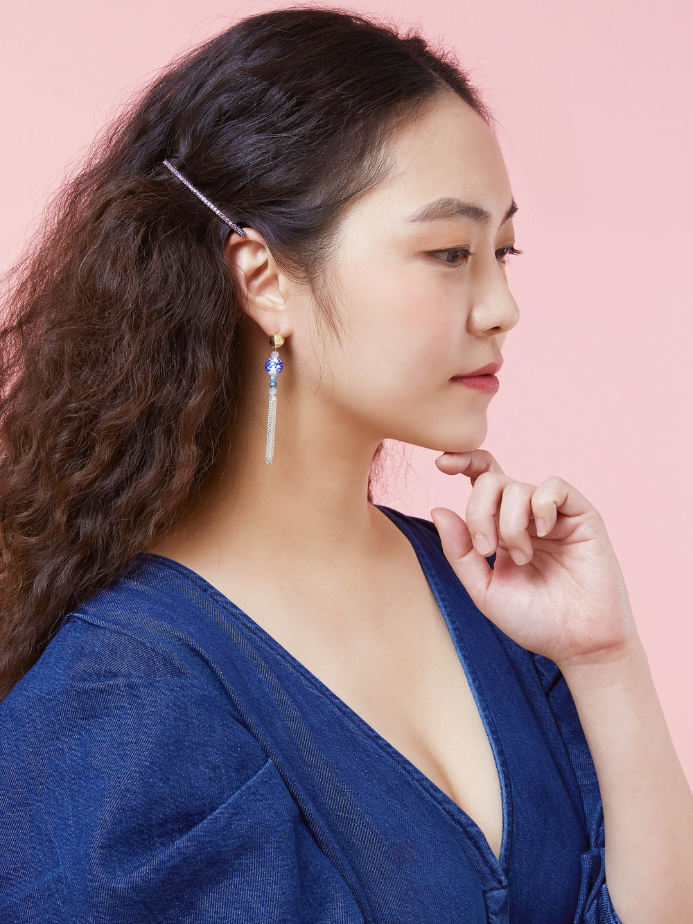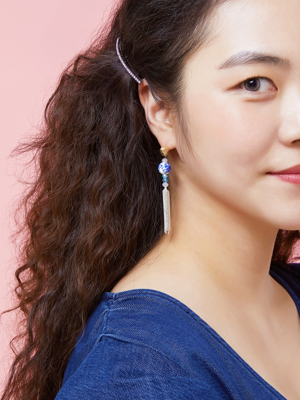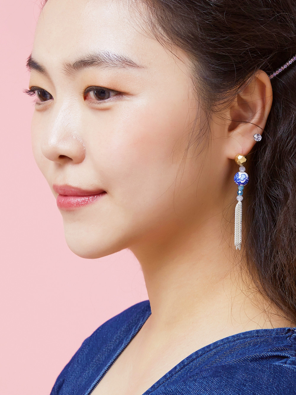 오리엔탈 무드 물씬 풍기는 드롭 귀걸이 입니다.
