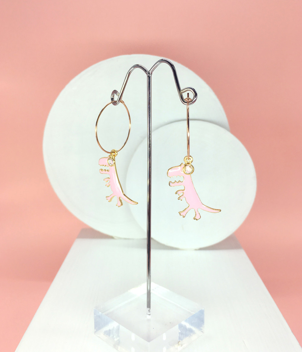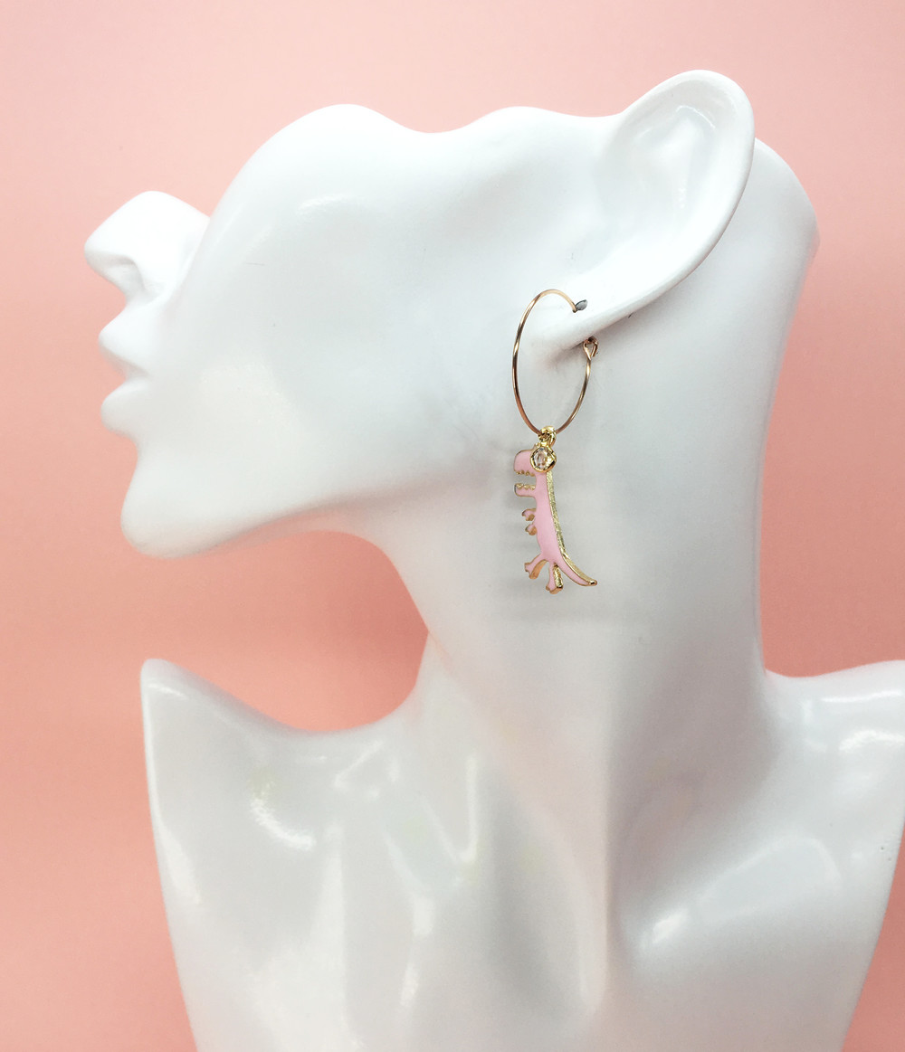 귀여운 핑크 공룡 써지컬스틸 링 귀걸이